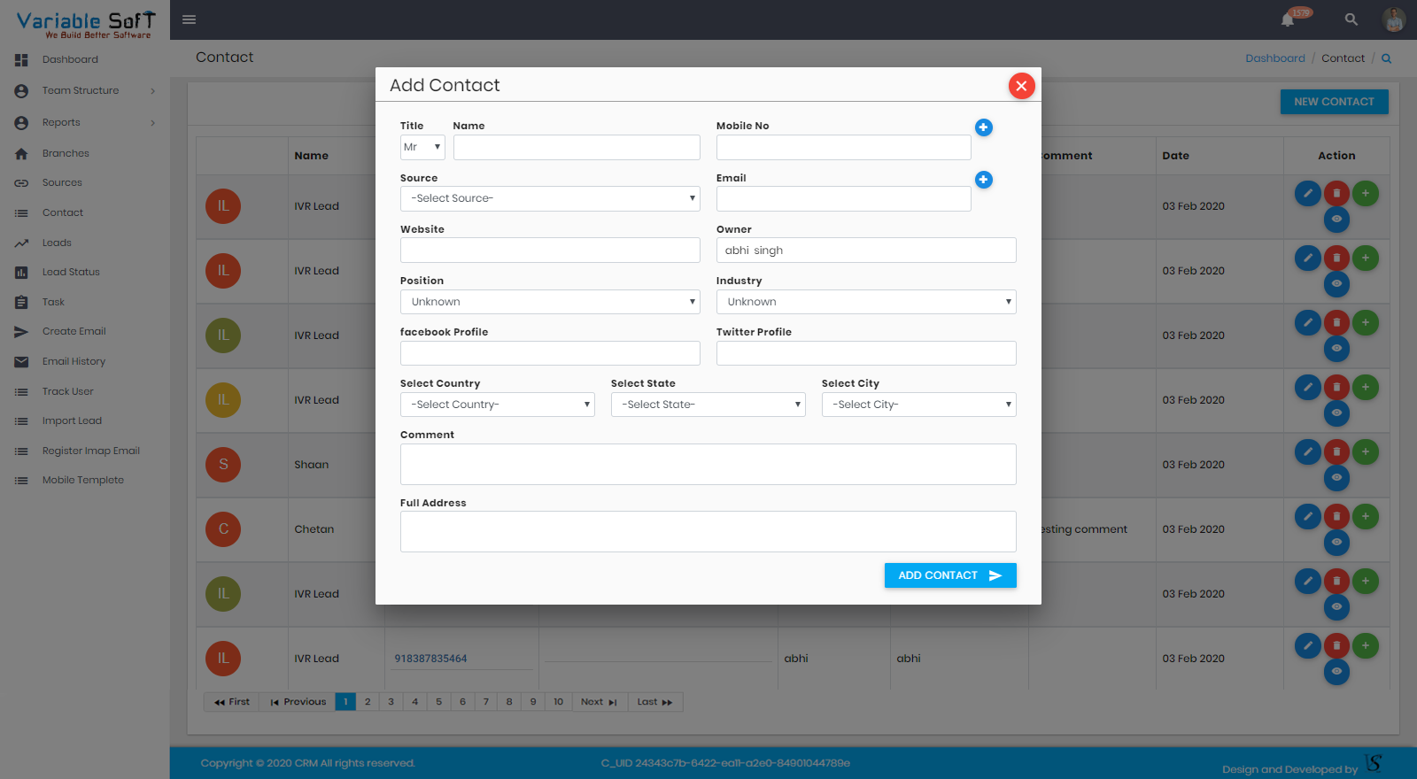 By using the CRM system, you are allowed to track sales, calls and visits of your customer and variable soft CRM provides this all feature which makes your sales process easy and simple.